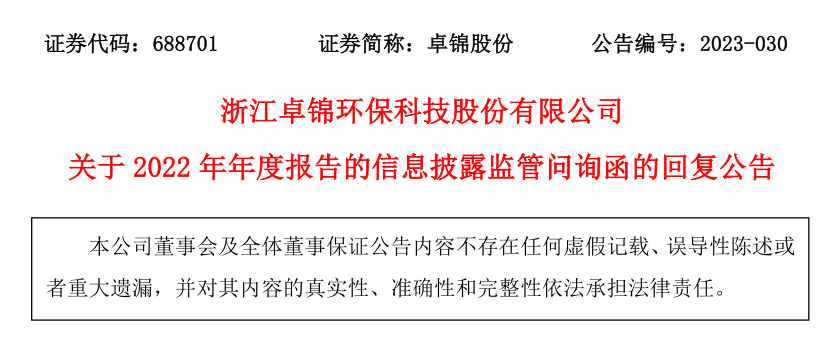 關于2022年年度報告的信息披露監(jiān)管問詢函的回復公告