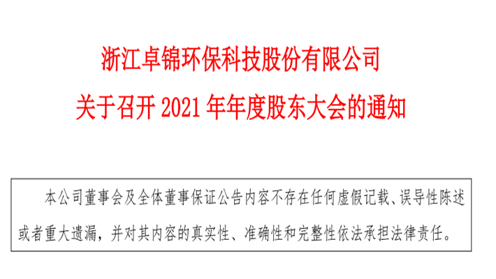 浙江卓錦環??萍脊煞萦邢薰?021年度股東大會通知