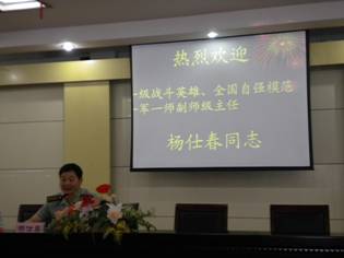員工培訓是我公司員工福利的重要組成部分。為了增強員工主動學習的積極性與創造性,營造一個自我學習的機遇與氛圍,本著“不斷學習、不斷進步”的原則,我公司定于2011年5月30日于朝暉街道文化活動中心開展第二次的員工讀書活動,激發員工求知欲望,通過學習達到自我增值的目的,提高員工的專業的素養和職業道德,將專業知識更好地運用到平常的工作中。本次活動我公司邀請了一級戰斗英雄、全國自強模范,一軍一師副師級主任楊仕春同志為大家作報告,分享他這一路走來的心路歷程。駐浙某師醫院三所主治醫師楊仕春,福建松溪人,1961年2月出生,1978年12月入伍,上校軍銜。1982年4月入黨,大專學歷,歷任排長、副連長、連長等職。1985年,楊仕春在邊境作戰中英勇負傷失去雙腿,被評為特等傷殘。1995年5月任軍醫。近三十來,楊仕春在不同崗位上,始終不忘對黨和人民的忠誠誓言,以進取心直面困難,以平常心對待得失,以感恩心回報部隊和社會,在不同崗位上盡心盡責,努力工作,先后被集團軍、師表彰為“學雷鋒、學‘硬骨頭六連’”、“學習成才先進個人”和“優秀共產黨員”,榮立二等戰功一次,2007年6月榮立一等功一次。