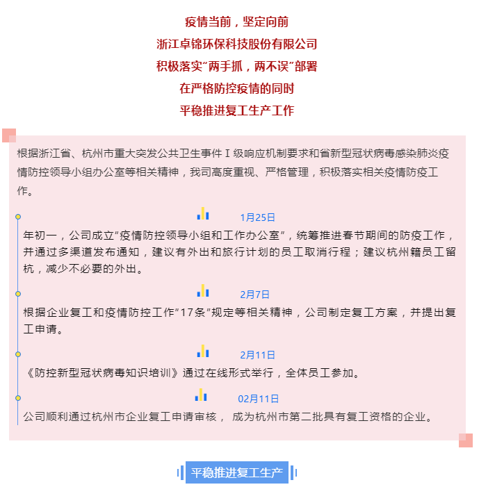 “兩手抓,兩不誤”,卓錦環保平穩推進復工生產
