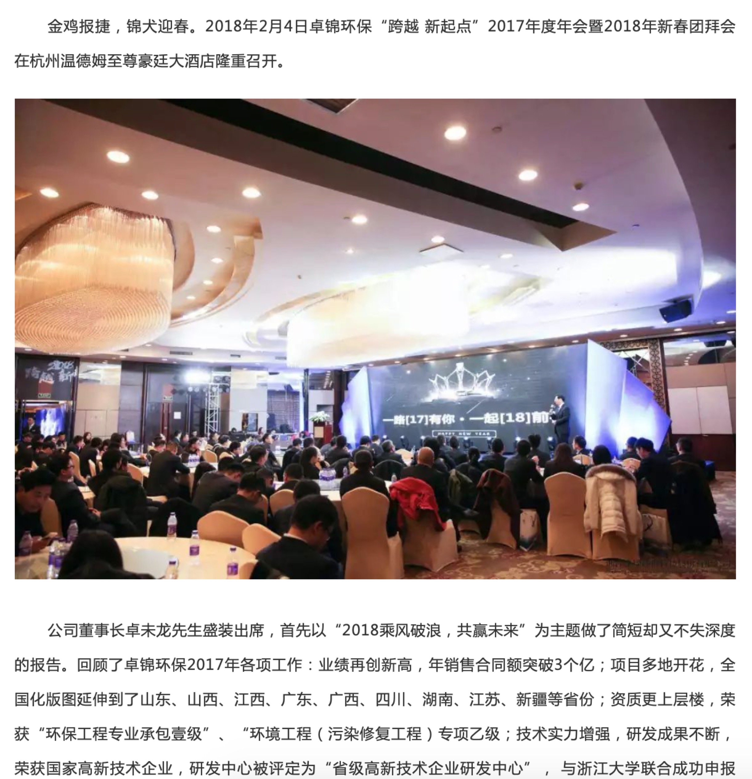卓錦環保“跨越 新起點”2017年度年會暨2018年新春團拜會”盛況新鮮出爐