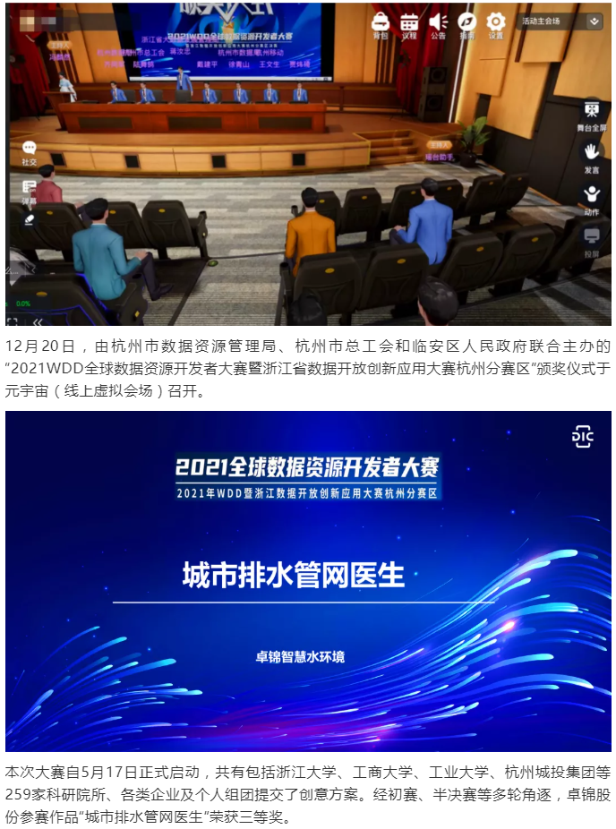 卓錦股份榮獲“2021WDD全球數(shù)據(jù)資源開發(fā)者大賽暨浙江省數(shù)據(jù)開放創(chuàng)新應用大賽杭州分賽區(qū)”三等獎