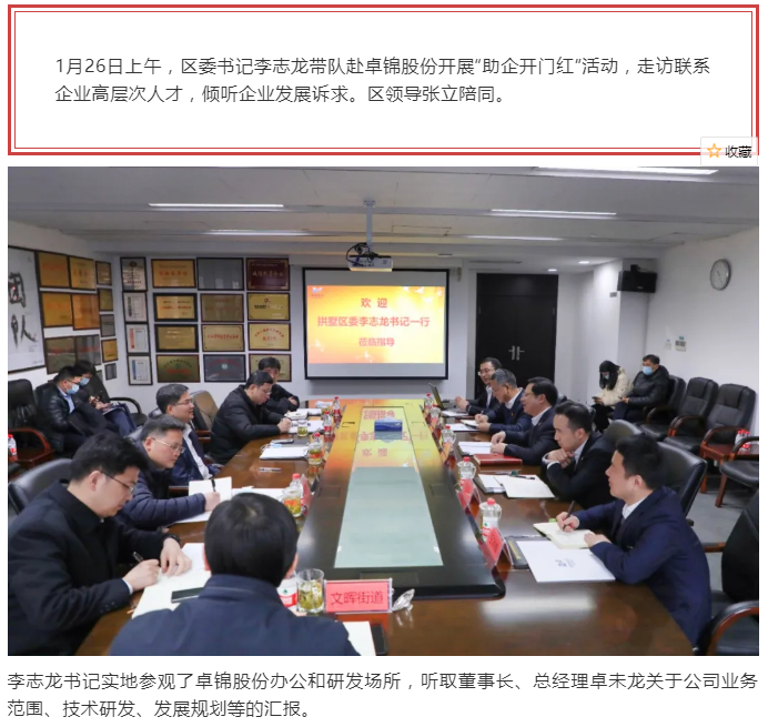 拱墅區委書記李志龍帶隊赴卓錦股份開展“助企開門紅”活動